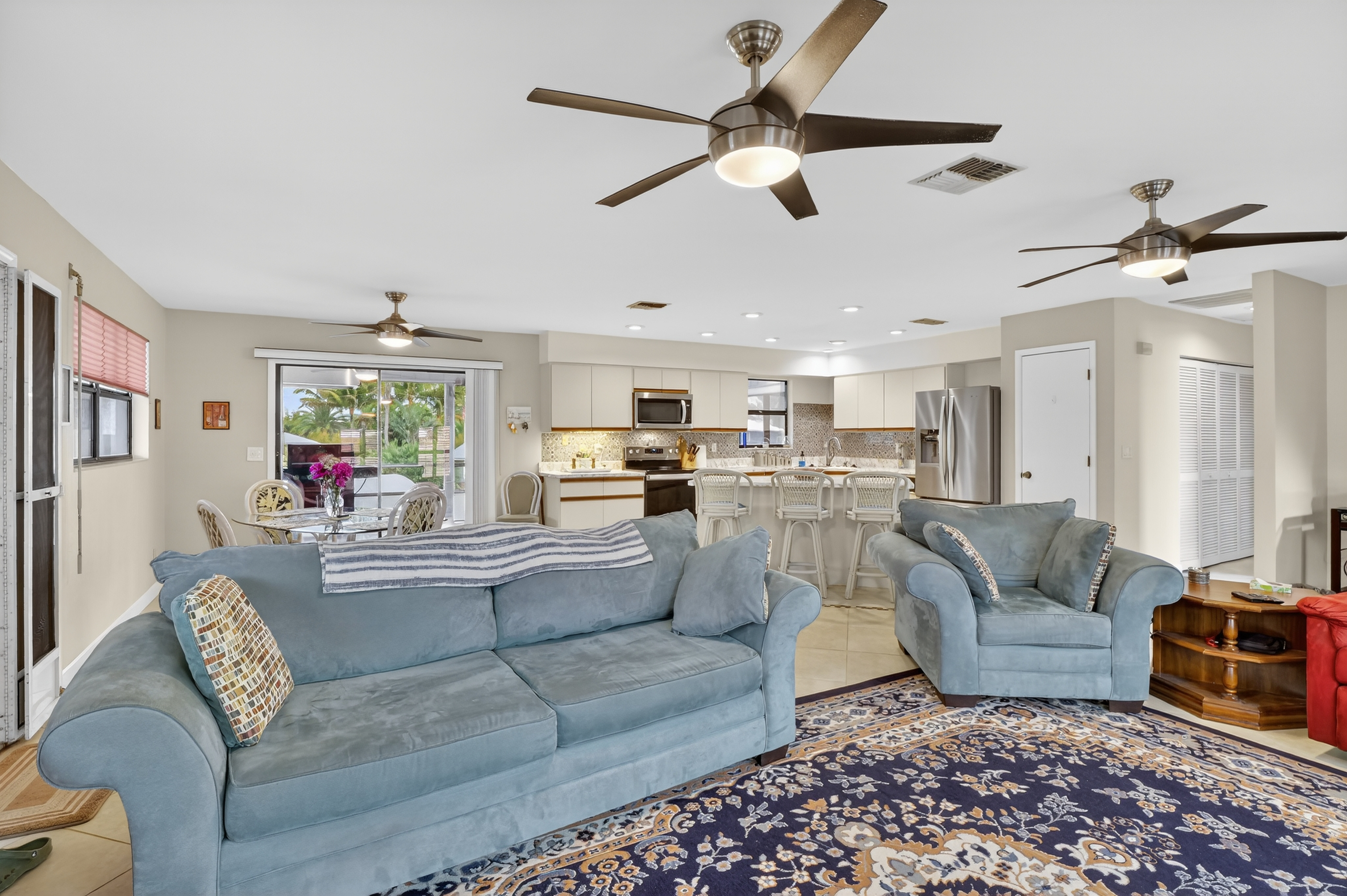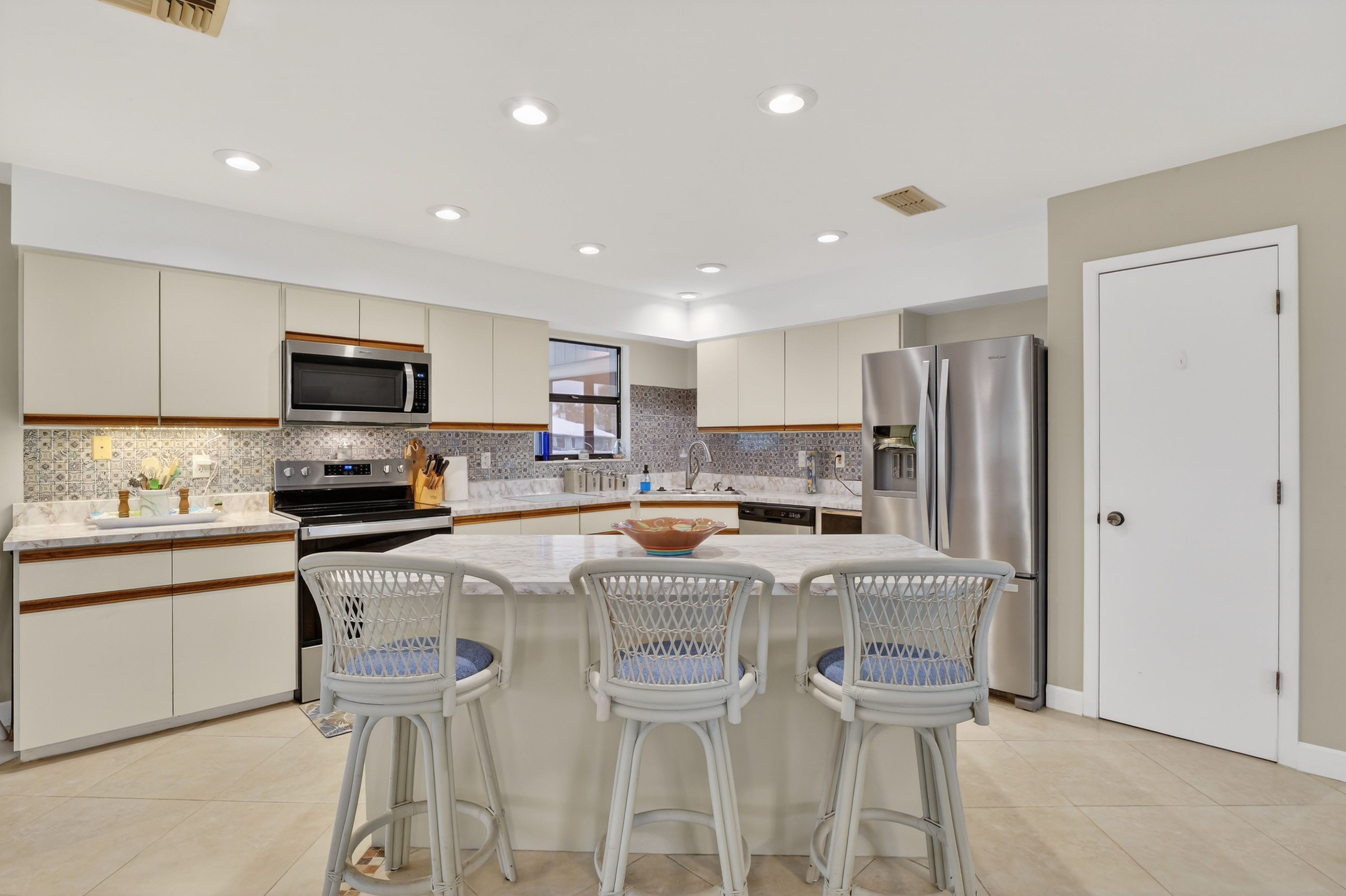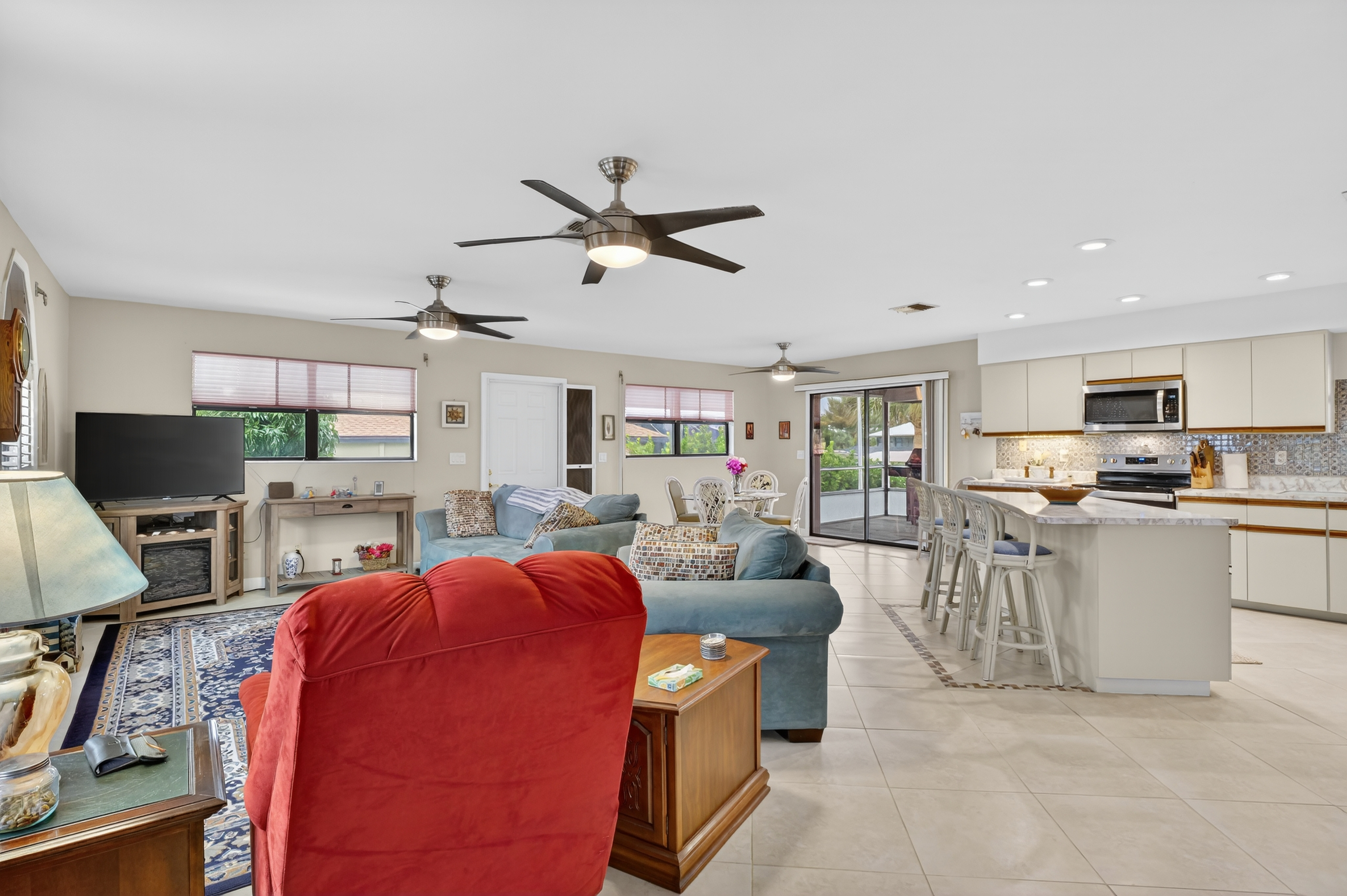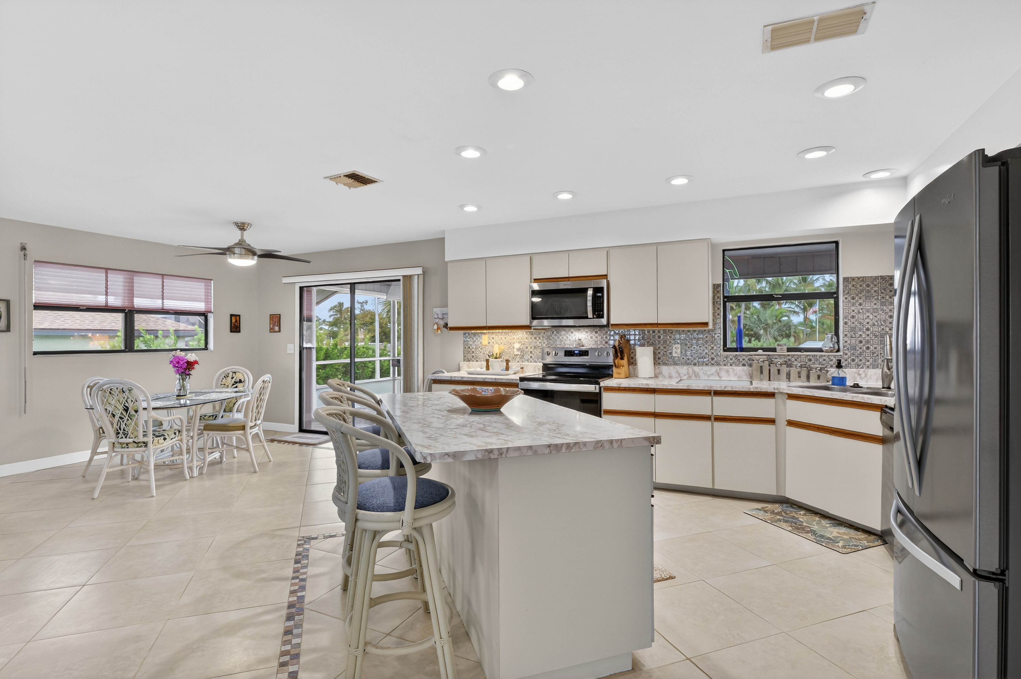 • screened LANAI, over looking the open channel with a built-in commercial stainless steel exhaust hood fan