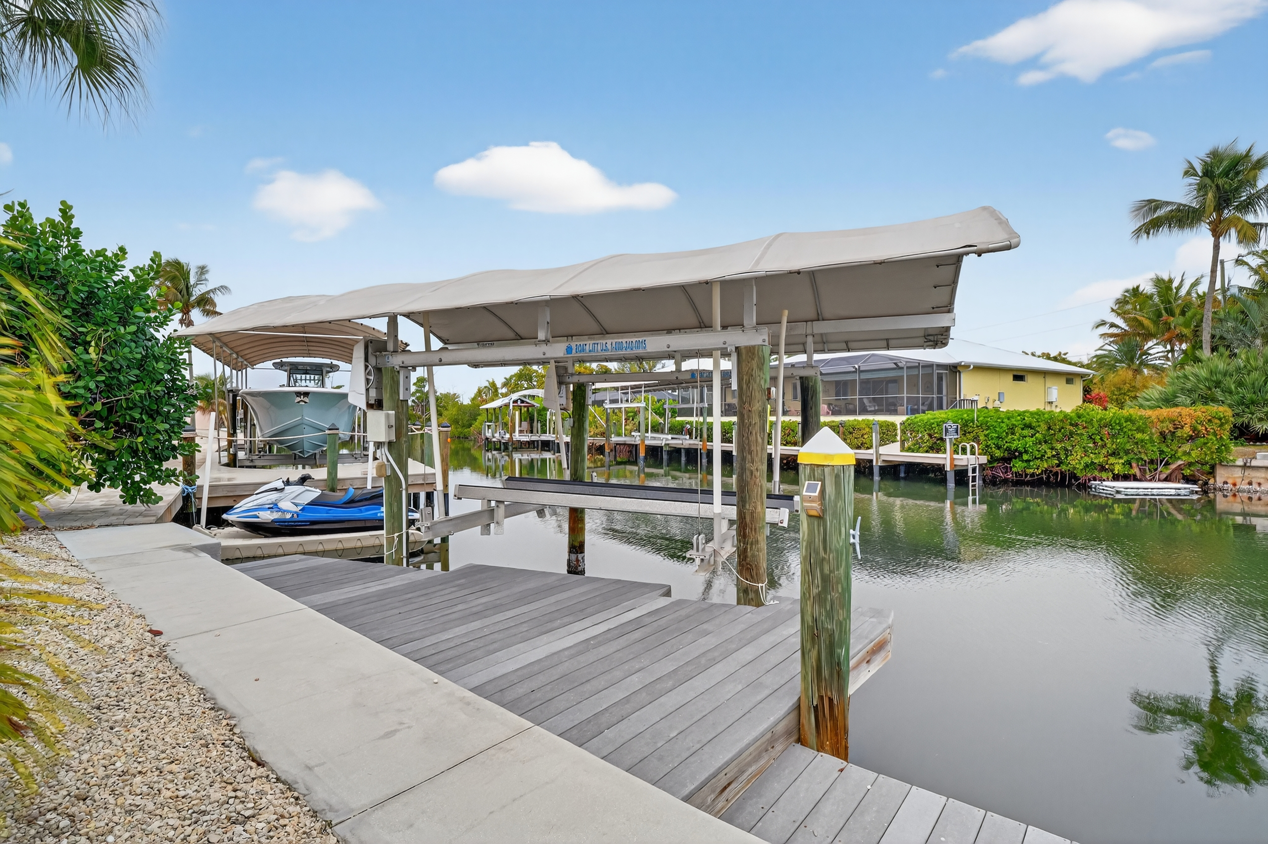 • featuring an 8,000lb boat lift with remote & cover, two davits and 40 linear feet sea wall